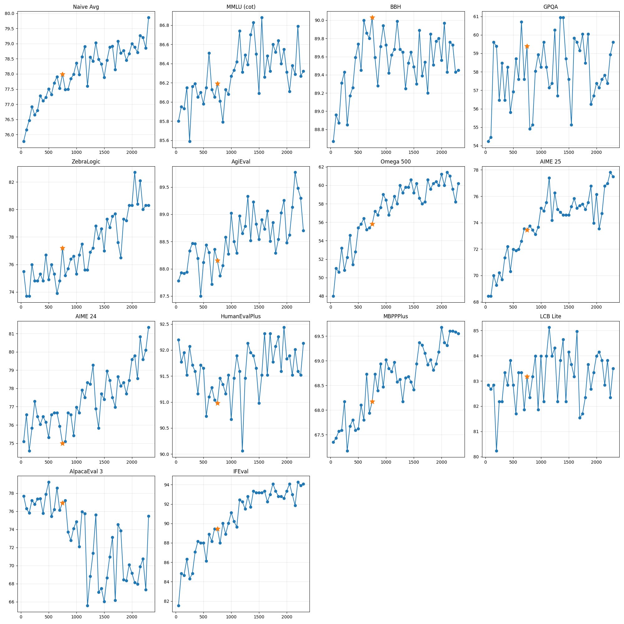 OLMoE-1B-7B-0924-Instruct (Sep. 2024): 38.44 avg. eval scoreOLMoE-1B-7B-0125-Instruct (Jan. 2025): 45.62 avg. eval scoreBase models determine the ceiling. Post-training’s job has been to reach it.